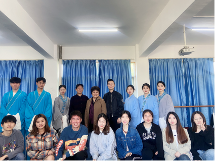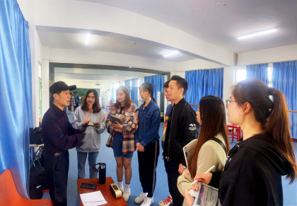 4月29日,tyc33455cc太阳成集团《歌曲写作与改编》课程思政课题组在菱湖校区开展黄梅戏传承与发展专题调研。陈星源老师带领调研小组走进了汪金才老师和江丽娜老师的黄梅戏课堂听课。