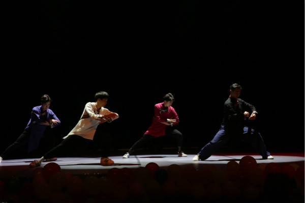 “双飞燕、侧手翻、倒扑虎……”这些都是舞蹈专业的基本功动作。在开场节目《基训展示》中,全班30名员工一齐上阵,用熟练的动作组合以及相互之间的默契配合,将舞蹈生基本功淋漓尽致地展现在观众面前,赢得了台下挥之不去的掌声与欢呼声,整个大厅的气氛都被调动起来。新闻学专业2018(1)班的管金玲是第一次见到专业的舞蹈表演,她表示:“如果用两个字形容,那就是震撼!台上的表演堪称一场视觉盛宴!”
