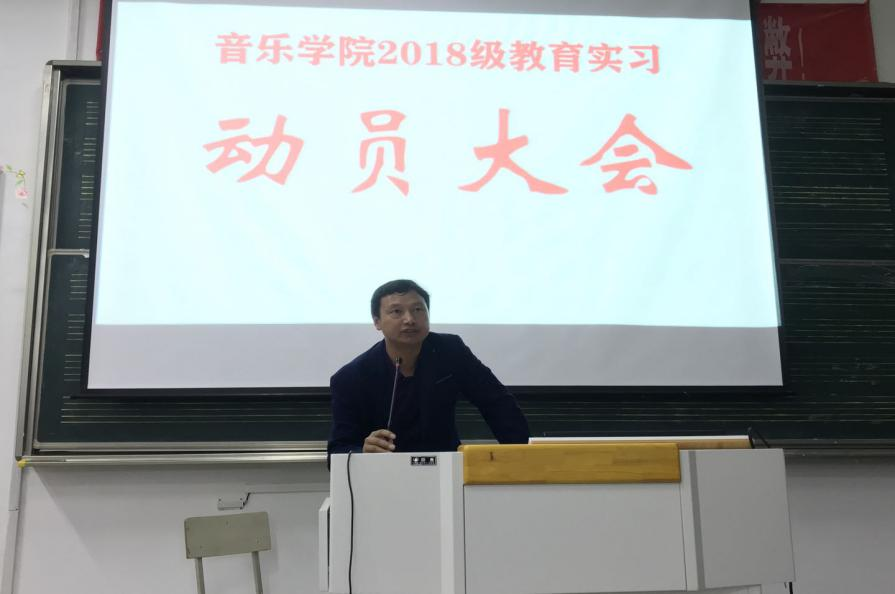 10月13日下午,tyc33455cc太阳成集团于艺术楼B107教室召开2018级音乐学专业师范生教育实习动员大会。公司副经理徐冉、党委副书记肖之进、教务秘书及全体实习指导教师、全体实习员工参加动员会。