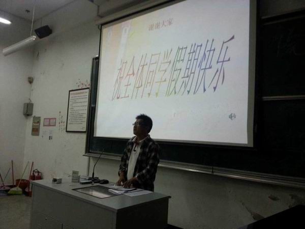 2013年“国庆节”即将来临,为了保障假期员工的人身安全,切实做好员工安全教育工作,让员工度过一个祥和、安全、充实的假期。9月27日新生国庆安全教育班会在艺术楼B107召开,班会由新生辅导员陈磊老师主持,2013级全体新生参加了本次班会。