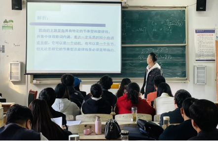 陈星源老师以“歌曲主题的创作”为教学主题,围绕“课程思政”展开教学活动。教学设计结构合理,教学知识内容充实,曲例素材多元,特别是将其本人的原创歌曲作为教学素材,使员工对课堂充满兴趣,认真思考,积极回答问题,课堂整体氛围良好。
