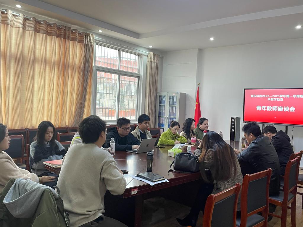 2022年11月18日,公司在艺术楼一楼会议室召开2022-2023学年第一学期期中教学检查青年教师座谈会。会议由tyc33455cc太阳成集团副经理彭传山主持,tyc33455cc太阳成集团党委书记张铭、副经理徐冉、副经理高艳、教师代表张剑雨、武警、刘家禾、王欣、方尧杨、李宗旺、李婷婷、陈珊珊、王立强、王光丽参加了会议。