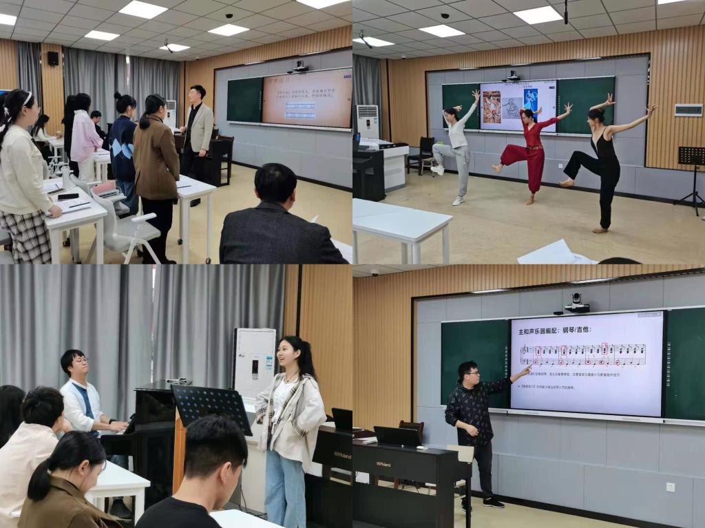 入围决赛的张昱靖、童昕、张剑雨、李宗旺四位老师分别由由器乐、舞蹈、声乐、理论教研室经过初赛后推选产生。四位教师分别从各自学科特点出发,以音乐和舞蹈课程为载体,深入挖掘各门课程蕴含的思想政治教育元素和所承载的思想政治教育功能,通过《黄河大合唱》呈现现波澜壮阔的抗战历史、通过《敦煌舞》展示古朴典雅的中华神韵、通过《梅娘曲》赞美涵养深沉的家国情怀、通过《卖报歌》映射当代儿童的幸福生活。精彩生动的课程讲授,润物无声的思政融入展示了老师们的业务功底和育人情怀。