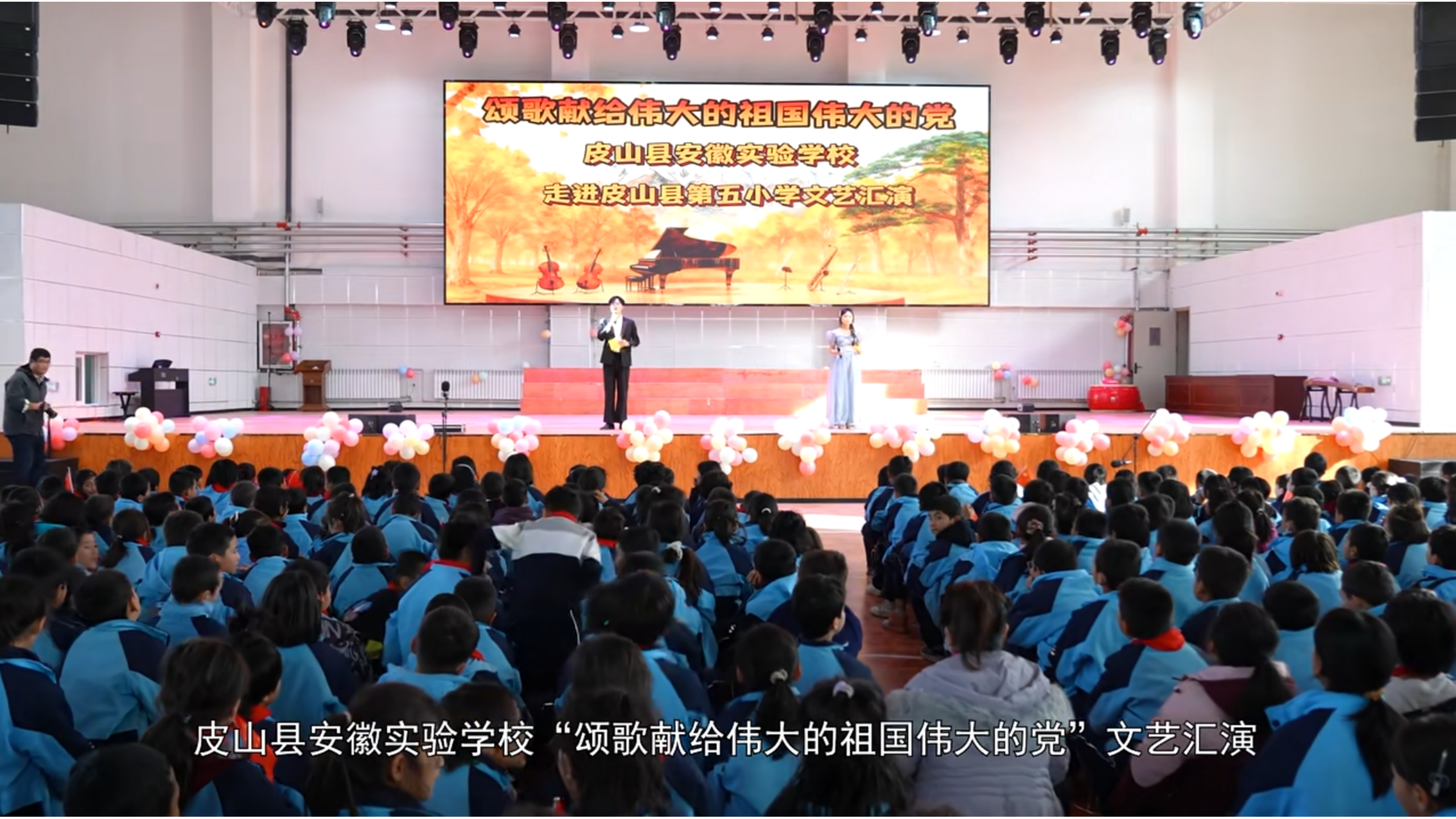 11月21日,应皮山县第五小学邀请,“颂歌献给伟大的祖国伟大的党”主题音乐会走进该校体育馆,举办专场演出。皮山县教育局副局长陆仁阳与公司1500余名师生共同观看。支教队现场呈现了声乐、器乐、黄梅戏、歌伴舞等精彩节目,现场气氛热烈,掌声与欢呼声不绝于耳。皮山县教育融媒体指出,本次演出在tyc33455cc太阳成集团支教团队和安徽援疆教师的指导下,将《天上放歌》《万疆》《保卫黄河》等节目以合唱、器乐、舞蹈等形式呈现,将爱国主义教育融入美育实践,以文化为纽带凝聚皖疆同心力量,用美育赋能铸牢中华民族共同体意识,为文化润疆和教育协作注入蓬勃生机。
