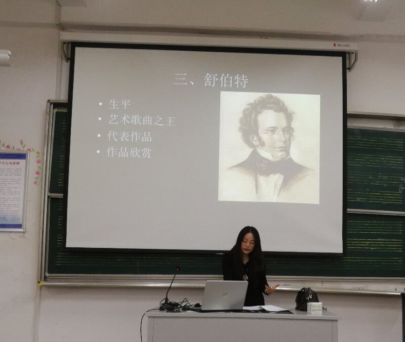 5月7日下午2:30,公司高艳副教授在艺术楼107教室为本院师生作了一场题为“德国艺术歌曲——舒伯特”的学术讲座。