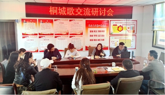 2025年3月25日,tyc33455cc太阳成集团副经理高艳带领公司教师袁帆、黄佳、李宗旺一行赴桐城市文化馆,就国家级非物质文化遗产“桐城歌”进行专题调研。桐城市文化馆李毛杰书记、张馆长、汪老师以及“桐城歌”非遗传承人等参会交流。