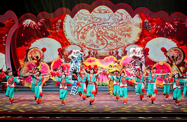 多样的民族乐器、红手绢、古典舞服……伴着《金蛇狂舞》的背景音乐,演员们手持花扇和灯笼欢喜入场,东北秧歌的手绢花随着鼓点转动,传统民俗元素的道具为表演锦上添花。参与开场舞《春开幸福门》的员工说:“从细微处的配饰到传统舞蹈表演形式,都展现了我们对优秀文化的传承,发扬了文化自信的精神风貌。”她坦言,彩排时,指导老师格外强调面部表情中情感的传达以及与观众产生的互动感。