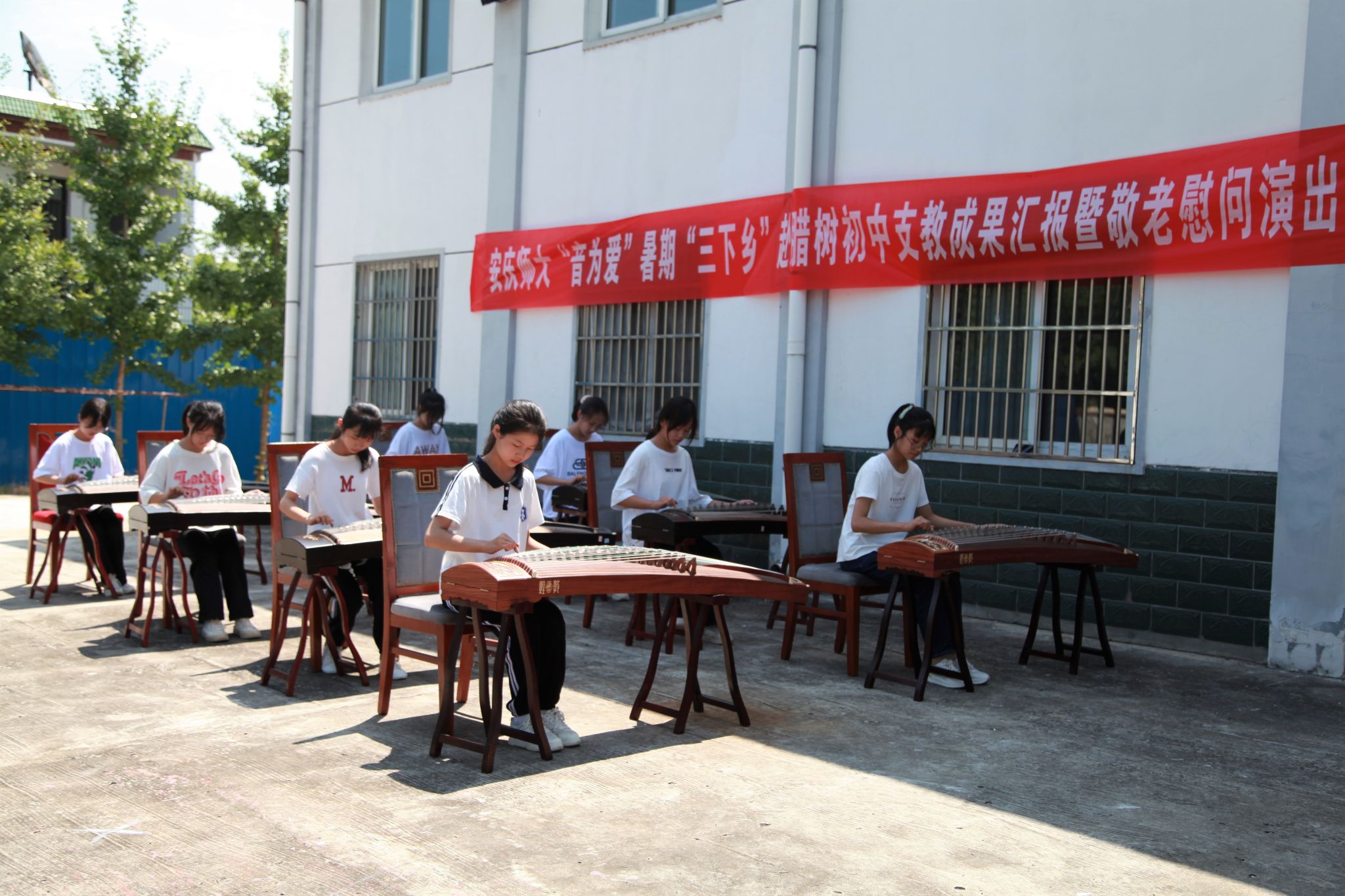 二是深耕艺术教育,培育审美素养。安徽省怀宁县腊树镇长期缺乏专业艺术教育。团队积极响应教育部普及艺术教育的号召,前往腊树镇开展艺术教育实践活动,深入基层,开展专业艺术教育和美育实践活动,要让孩子们有4样艺术收获:学1样乐器,唱1首歌,练1口普通话,沐1次心灵滋养。以器乐、声乐、舞蹈为主要艺术类型,以红色、法治、优秀传统文化作品、语言艺术作品为主体内容,集中开展12天的专业教学,并开展敬老院、乡村爱心送演。