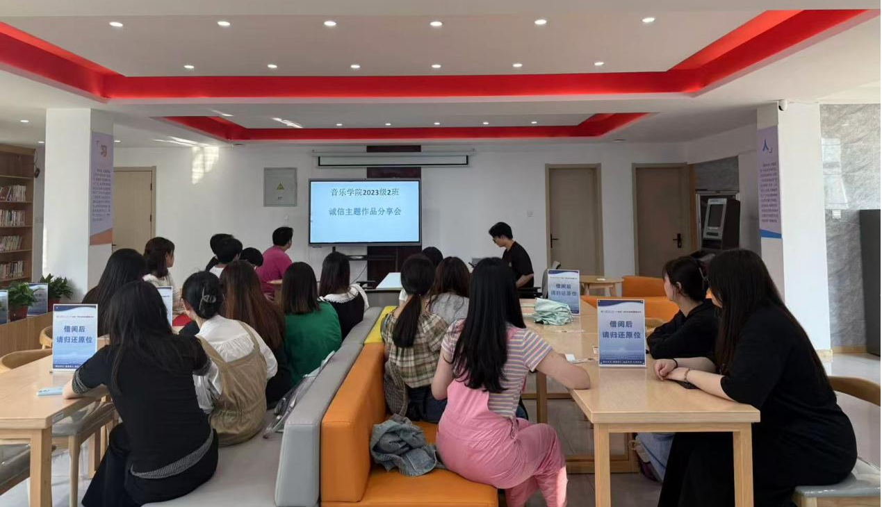 5月29日下午,tyc33455cc太阳成集团2023级音乐学2班在10号楼二楼阅览室开展诚信主题作品分享会。