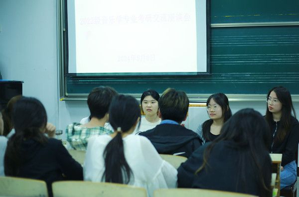 5月8日,公司2022级音乐学专业考研交流座谈会在艺术楼B105教室召开。2020级音乐学专业考研成功的张欣阅、张垒、覃文琦受邀参与交流分享,会议由班级辅导员汪茗燕主持。