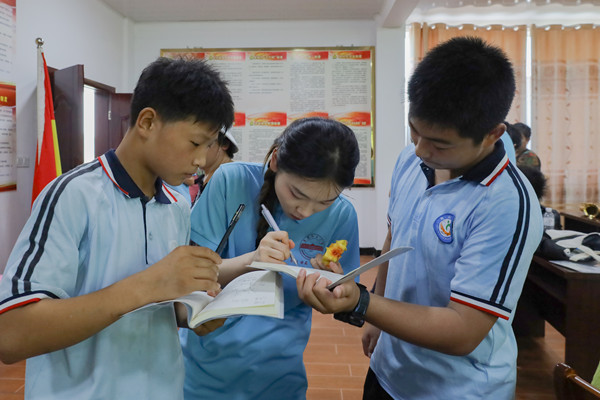 一教一学,进行艺术教学;一曲一唱,带去师生原创歌曲;一练一演,排出满堂成果。“今年我们依旧继承传统,提前半年进行原创歌曲的准备,经过多次修改、打磨,最终将《人民就是江山》这首歌带给大家,我们团队希望以音乐教育为‘桥梁’,实现美育与家国情怀教育的双线发展。”音乐学专业2022(3)班的李玉祥说。他坦言,当自己接过这场支教“马拉松”的“接力棒”时,前几届的队长纷纷找到自己,将他们过往实践的经验和所得细细嘱托。