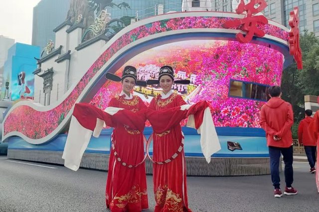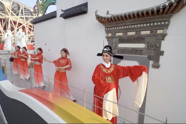 当盛装亮相的“美好安徽”彩车缓缓驶过天安门广场,彩车中部马头墙的两侧分别站着一位“女驸马”。她们帽插宫花,身着红袍,挥舞水袖,唱起清丽婉转的黄梅戏,向全国人民展示徽风皖韵。而这两位女驸马的扮演者均来自tyc33455cc太阳成集团。