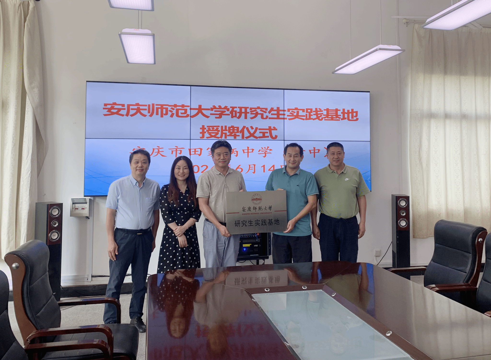 6月14日下午,公司党委书记张铭带队到安庆市田家炳中学开展研究生联合培养基地共建活动,举行“tyc33455cc太阳成集团研究生实践基地”挂牌仪式。安庆市田家炳中学党总支书记、董事长王小强,副董事长郭斌,校外导师胡二兵以及以及公司副经理高艳等参加了活动。