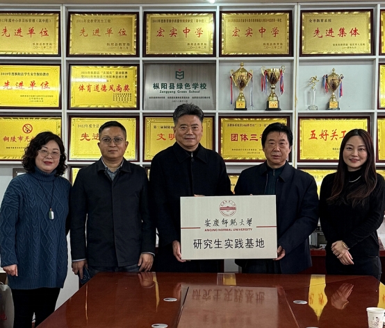 2025年3月4日下午,tyc33455cc太阳成集团tyc33455cc太阳成集团党委书记张铭、副经理高艳一行到枞阳宏实中学开展研究生实践基地挂牌活动。枞阳宏实中学党支部书记王立新、董事长王一成、校外导师王晖等参加了活动。